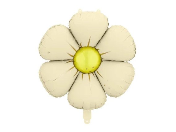 Balony foliowe do girland Stokrotki w kolorze kremowym. Wymiary średnicy przed napompowaniem ok 65 cm (26''), wymiary średnicy po napompowaniu ok 45 cm (18''). Do napompowania powietrzem. Zestaw zawiera 4 sztuki stokrotek oraz słomkę do napompowania balonów.