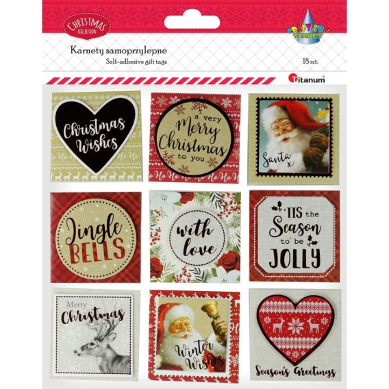 Karnety 3D do opisywania prezentów. Dzięki samoprzylepnej warstwie nie ma potrzeby dowiązywania sznureczka do dekorowanego przedmiotu, a sam karnet można przykleić w dowolnym miejscu. Wymiary karnetu: 55 x 55 mm, w opakowaniu 2 plansze. 18 szt.