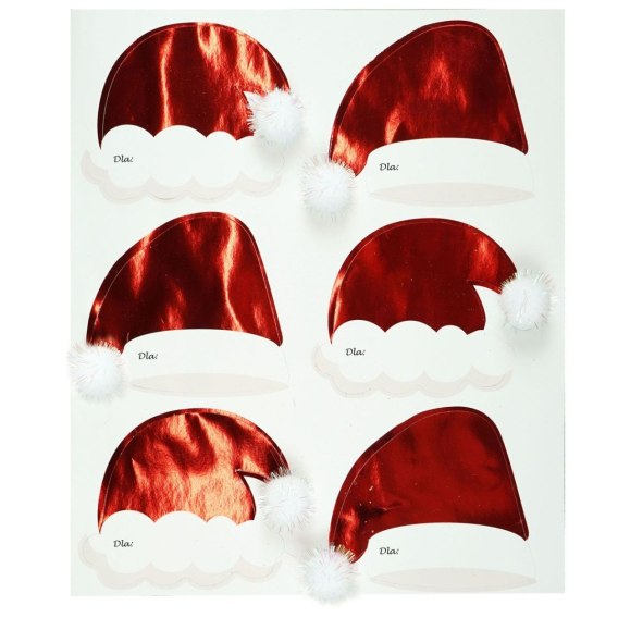 Bileciki na prezenty - czapki Mikołaja (6 szt.)