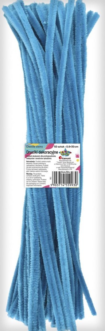 Druciki kreatywne, kolor: turkusowe, długość: 30 cm, szerokość: 0,6 cm. 50 sztuk.