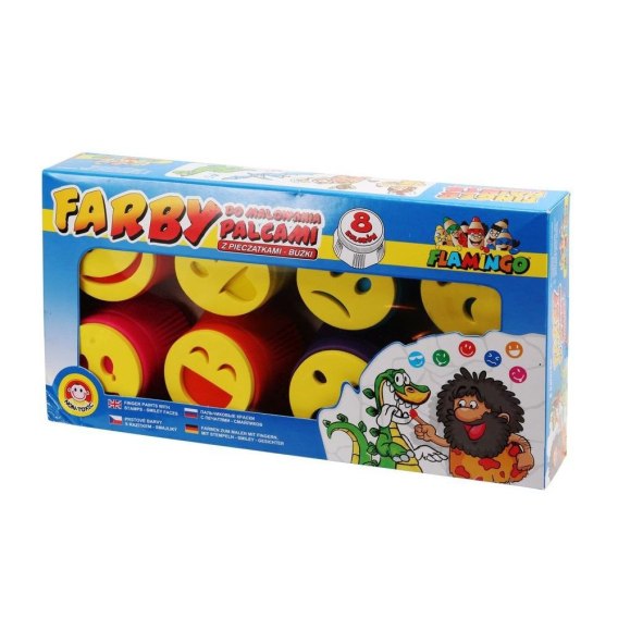 Zestaw żywych, jaskrawych farb do malowania palcami. Niezastąpione w rozwoju zdolności manualnych. Podnoszą umiejętności kreatywnego myślenia i pobudzają do artystycznego działania. Aż 8 kolorów w praktycznych, zakręcanych pojemnikach o pojemności 25 ml. Dodatkowo wszystkie farbki posiadają przyklejone do zakrętek pieczątki z pianki, które dostarczą dzieciom jeszcze więcej pomysłów i zabawy.