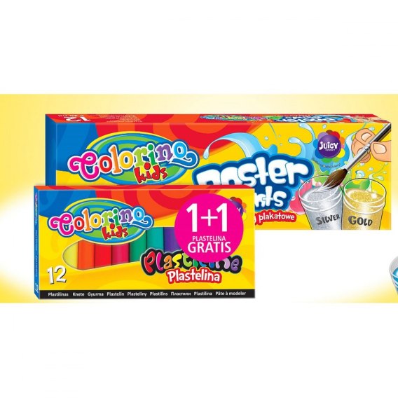 KIDS FARBY PLAKATOWE COLORINO 20 ML 12 KOL. plus PLASTELINA 12 KOL GRATIS