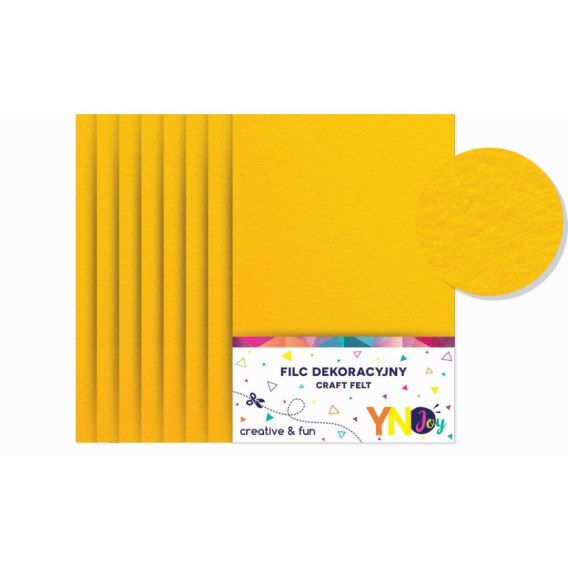Opakowanie zawiera 8 arkuszy filców w rozmiarze A4 w żółtym kolorze.