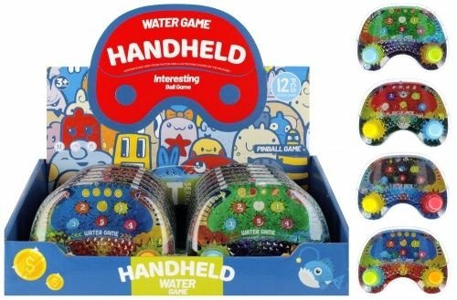 Zalety produktu: dba o rozwój ruchowo-myślowy, rozwija kreatywność dziecka. Gra zręcznościowa polegająca na umieszczeniu wszystkich kolorowych kulek po dwie na każdym podeście, posługując się dwoma przyciskami, które wprawiają kulki w ruch dyktowany przez znajdującą się w środku wodę. Gra w kształcie pada. Występuje w 4 wzorach i kolorach. Zawartość zestawu: gra wodna. Wymiary/waga/baterie: wymiary produktu (dł. x wys. x gł.) [cm]: 14x10x3, wymiary opakowania DISPLAY (dł. x wys. x gł.) [cm]: 31x11x21 ,waga produktu bez opakowania [kg]: 0,18 kg, waga produktu w opakowaniu DISPLAY [kg]: 2,45 kg, nie wymaga zasilania bateriami. Zabawka przeznaczona dla dzieci w wieku: 3+. Pakowana na displayu po 12 szt.