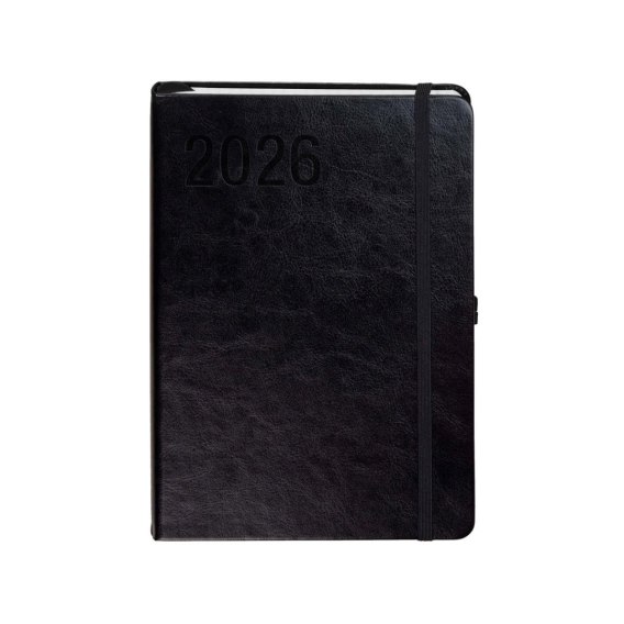 Format A5, gramatura: 80 g, liczba stron: 144, okładka: twarda, materiał: skóra ekologiczna, wymiary: 90x140 mm, wnętrze: TDW tydzień do wglądu, pionowa gumka zamykająca, gumka na długopis, zaokrąglone rogi, wyklejka z czarnego papieru ozdobnego, koperta na luźne karteczki, wstążka w kolorze okładki, zawiera dodatkowo: skrócony kalendarz 2025-2027, plan roku 2026, ważne wydarzenia, notatnik oraz notatnik A-Z