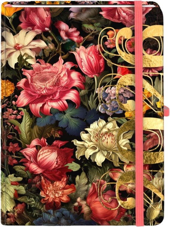 Format: A5, wymiary okładki: 210x144 mm, układ: dzień na stronie, ilość stron: 352, oprawa: twarda soft touch , materiał: papier, gramatura papieru: 80g, kolor papieru: chamoise, dodatki: plan roku 2026, ważne wydarzenia, skorowidz adresowy, notatki, pionowa gumka zamykająca: wstążka: czerwona, zaokrąglone rogi, wyklejka: czarna, barwione brzegi