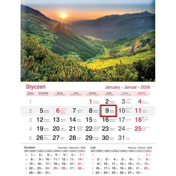 Kalendarz ścienny JEDNODZIELNY 2025 GÓRY A4 Lucrum (KJ03)
