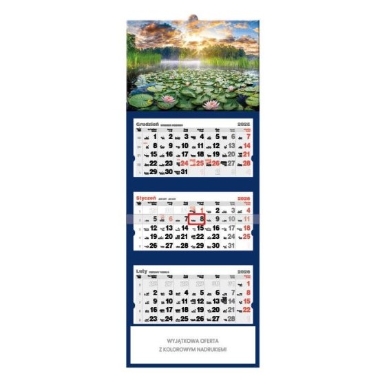 Kalendarz ścienny Lilie wodne tróijdzielny 320mm x 855mm Jotan (T50)