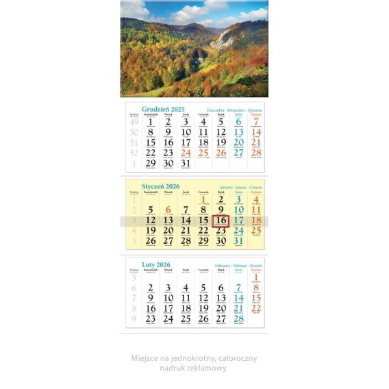 Kalendarz ścienny trójdzielny 320mm x 860mm Lucrum (KT03)