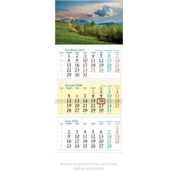 • Kalendarz ścienny trójdzielny 320mm x 860mm Lucrum (KT04)