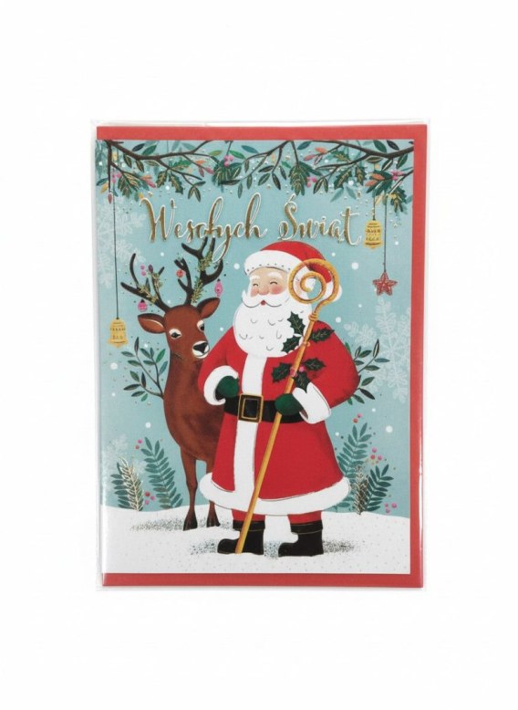 Kartka składana Karnet B6 BN mikołaj z reniferem B6 Henry (5908451981488)