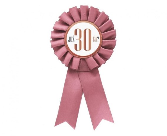 KOTYLION JUŻ 30-TKA? Kolor: różowy, biały, różowo-złoty Napis: Już 30-tka? Długość: 15,5 cm Szerokość: 8 cm Materiał: wstażka, tworzywo sztuczne Zapięcie: agrafka Ilość sztuk: 1 szt. Producent: Godan S.A.
