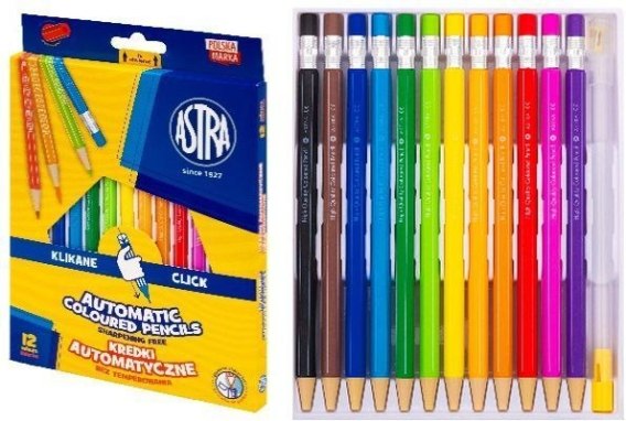 Kredki automatyczne bez temperowania ASTRA - 12 kolorów
