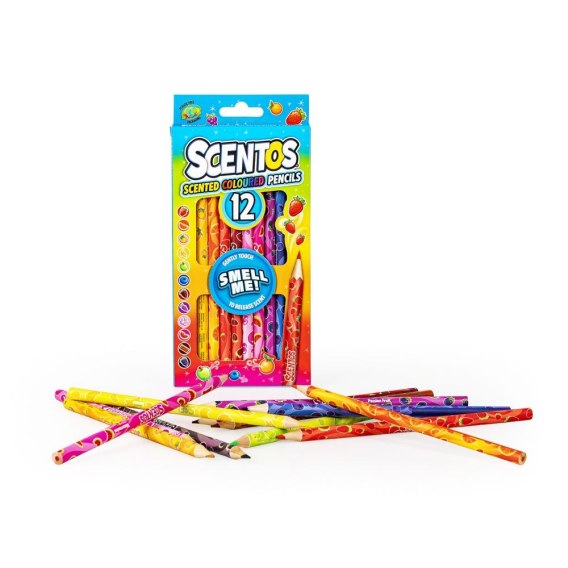 Owocowa eksplozja zapachu! Zestaw kryje w sobie dwanaście ołówkowych kredek, a każda z nich ma inny kolor. Poszczególnym kredkom odpowiada inny, słodki zapach, przywołujący na myśl owoce lub słodycze. O inspiracji zapachowej informuje nadruk na każdej z kredek.