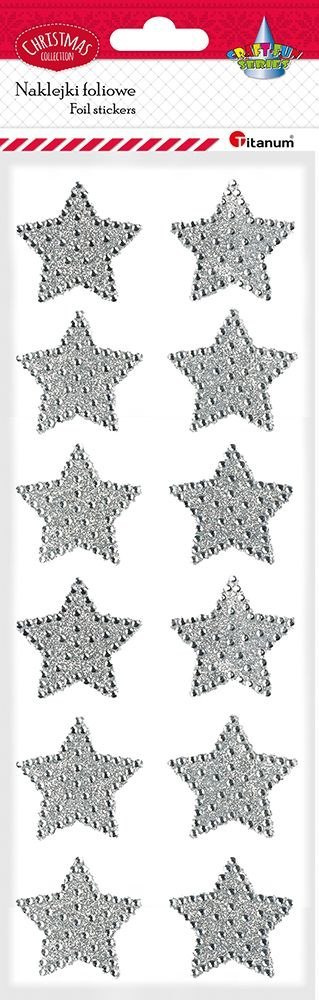 Naklejki foliowe z kryształkami. Kształt: gwiazdki. Kolor: srebrny. Wymiary: 40 mm.