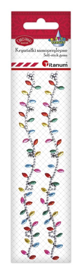 Kryształki samoprzylepne, wzór: sznur kolorowych lampek, wymiary: 20x160mm. 2 sztuki.