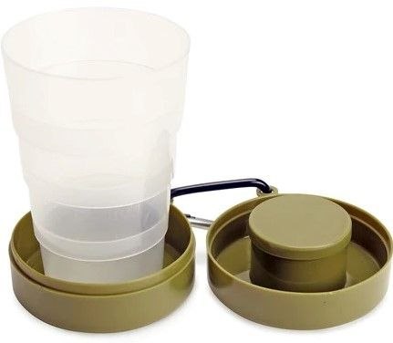 Składany kubek z przegródką na tabletki sprawia, że jest bardzo wygodny w użyciu nawet w podróży.