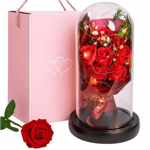 WIECZNA RÓŻA PIĘKNY BUKIET RÓŻ W SZKLE ŚWIECĄCA LAMPA LED USB