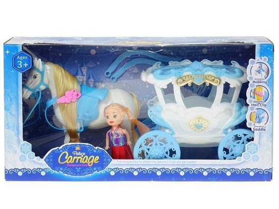 Karoca z koniem i lalką 7cm; 37x12,5x19cm, W/B