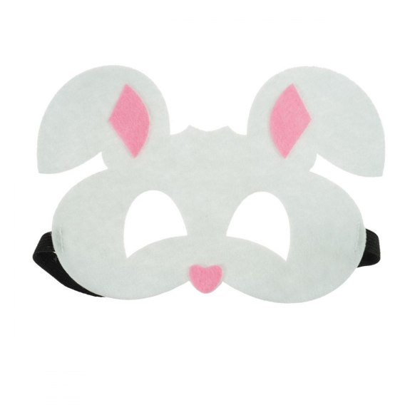 Maska dziecięca wykonana z grubego filcu w kształcie pyszczka królika. Maska posiada wycięte otwory na oczy oraz przestrzeń w okolicy nosa umożliwiając wygodne noszenie. Wyposażona została w elastyczną gumkę zapewniającą komfortowe zakładanie oraz zdejmowanie maski. Doskonała jako uzupełnienie stylizacji, przebrania na urodziny, teatrzyki, bale przebierańców.