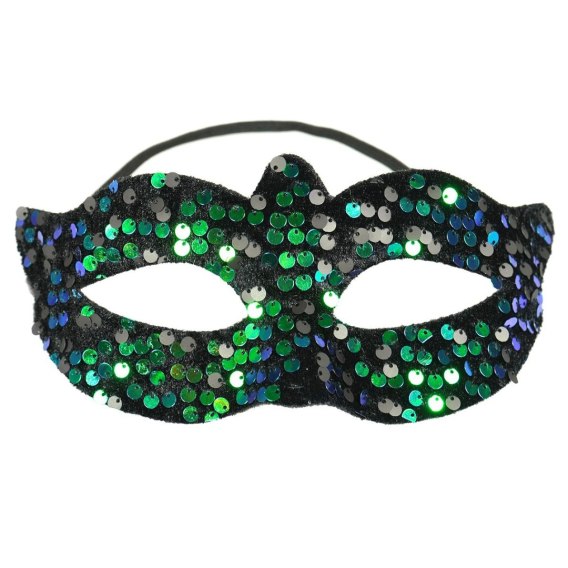 Czarna maska wenecka z kolorowymi cekinami to doskonały dodatek na karnawał, na imprezy kostiumowe lub bale maskowe. Ta wyjątkowa maska karnawałowa doda tajemniczości i blasku, dzięki cekinom mieniącym się na zielono i niebiesko.