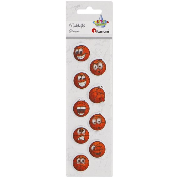 Naklejki wypukłe miękkie. Kształty: piłki koszowe emotikony, kolory: mix. 9 sztuk.