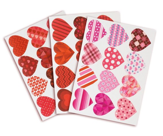 Naklejki dekoracyjne w kształcie serduszek. Serduszka posiadają ozdobne wzory. Idealne do dekoracji kartek walentynkowych, albumów ze zdjęciami, laurek, zaproszeń, prac szkolnych.
