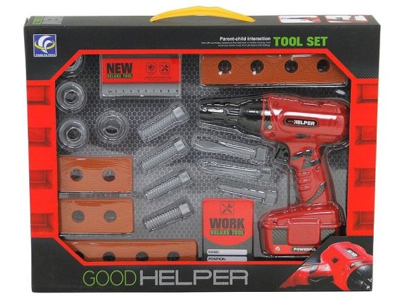Wiertarka na baterie z zestawem narzędzi; 38x30x6,5cm, W/B