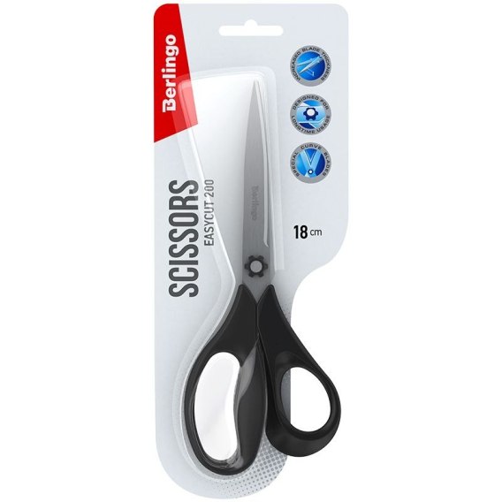 Opakowanie zawiera (12 szt.) wysokiej jakości wszechstronnych i uniwersalnych nożyczek Berlingo (serii EasyCut) które stanowią nieodłączny element każdego biura lub domu. Pakowane w wygodny blister z zawieszką euro.