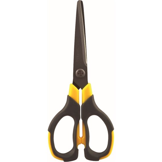 Nożyczki wykonane ze stali nierdzewnej. Ostrze pokryte fluorem odporne na przywieranie kleju oraz taśmy klejącej. Idealnie wyprofilowany, miękki uchwyt sprawia, że nożyczki mogą być używane zarówno przez osoby praworęczne, jak i leworęczne.