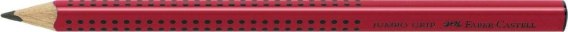 Ołówek grafitowy Jumbo Grip Faber-Castell w kolorze czerwonym. Nawet w czasach zdominowanych przez komputery, telefony i internet, ołówek wciąż pozostaje nieodłącznym towarzyszem codzienności. To doskonałe w swojej prostocie narzędzie. Ergonomiczny trójkątny kształt i charakterystyczna dla tej serii opatentowana strefa Grip z małymi, antypoślizgowymi punktami zapewniają wysoki komfort użytkowania i niemęczące, wygodne pisanie i szkicowanie. Większy rozmiar – doskonały do nauki pisania. Odpowiedni również dla leworęcznych. Z odpornym na pękanie grafitem o stopniu twardości B, dzięki bezpiecznemu procesowi wiązania (SV). Wykonany z certyfikowanego drewna pochodzącego ze zrównoważonego i odpowiedzialnie zarządzanego leśnictwa. Powierzchnia pokryta lakierem na bazie wody – bezpiecznym dla środowiska i zdrowia dzieci.