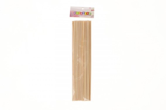 Drewniane patyczki, okrągłe, średnica 5 mm, długość 30 cm, naturalne. 25 sztuk.