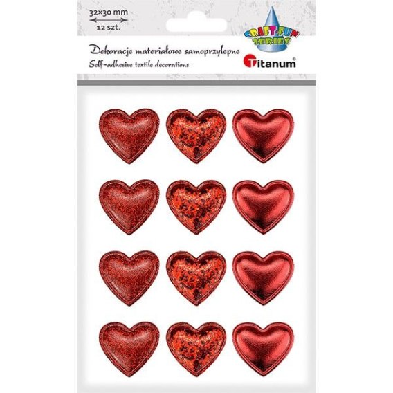 Ozdoba materiałowa Craft-Fun Series samoprzylepna Czerwone serduszka Titanum (BJ25042711)