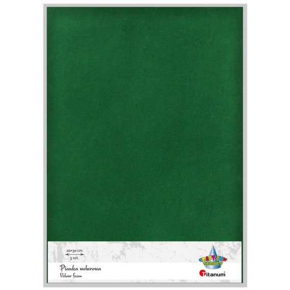 Pianka welurowa - sztuczna trawa. Wymiary: 20 x 30 cm, grubość 2 mm. Kolor: zielona. Opakowanie 5 szt.