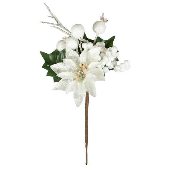 Świąteczna gałązka dekoracyjna na druciku. Kompozycja w zimowym klimacie. Idealny dodatek do stroików i innych aranżacji świątecznych. Długość produktu: 17-20 cm.