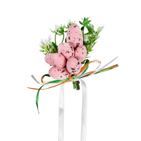 Dekoracja o długości 10 cm jest lekka i łatwa w montażu na wstążce, co sprawia, że można ją szybko i wygodnie przymocować do koszyczka. Produkt idealnie sprawdzi się również jako ozdoba stołu, wiosennego stroika czy innych wielkanocnych kompozycji.