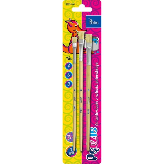 Pędzle do malowania z naturalnego, sztywnego włosia. Płaski kształt. Rączka z drewna brzozowego.