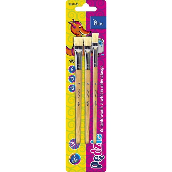 Pędzle do malowania z naturalnego, sztywnego włosia. Płaski kształt. Rączka z drewna brzozowego.