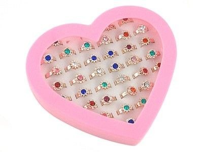 Zestaw 36 pierścionków, regulowane w plastikowym etui - serce; 16x14x4cm, Box