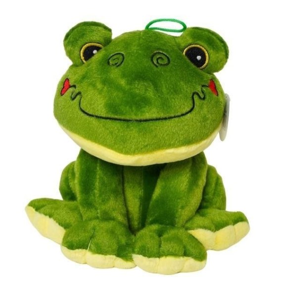 Zabawka ma wyhaftowane oczy i buzię, nie ma małych elementów, dzięki czemu jest bezpieczna dla maluchów. Wystarczy nacisnąć jej brzuszek, żeby wesoło zakumkała. Zielona żabka to doskonały pomysł na prezent!
