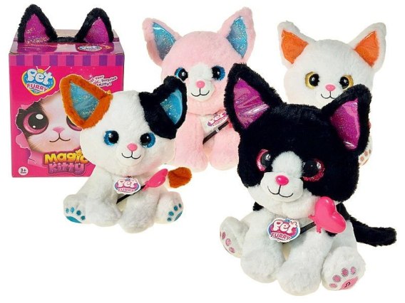 Kotek pluszowy 25x17,5x15cm z ogonem dł. 14cm, interaktywny, reaguje na dotyk, z dźwiękiem; 20x17x17cmW/B