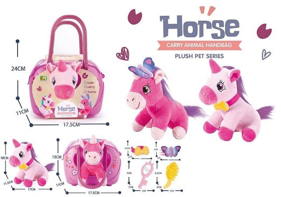 Zestaw jednorożec pluszowy z torbą do przenoszenia, z akcesoriami do czesania; 24x17,5x11, Box