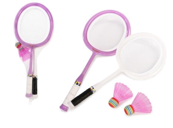 W zestawie: 2 rakietki 21 x 52 cm, 2 lotki, pakowane w siatkę, 3+