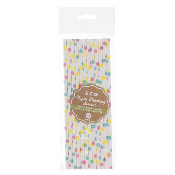 Słomka papierowe, kolorowe groszki 6x197 mm/12szt. 12 szt Godan (SG-RPKG12)