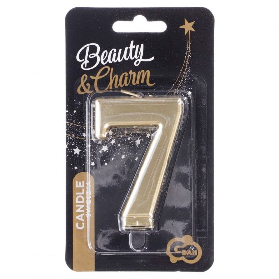 Świeczka cyfra 7 urodziny, metalik złota, 8 cm