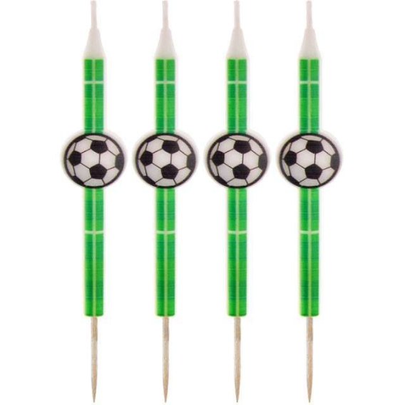 Komplet klasycznych, prostych świeczek, przyozdobionych piłką nożną oraz nadrukiem murawy - element obowiązkowy na każdejk imprezie urodzinowej prawdziwego fana footballu! Doskonale sprawdzą się jako dekoracja babeczek, muffinek oraz tortów.