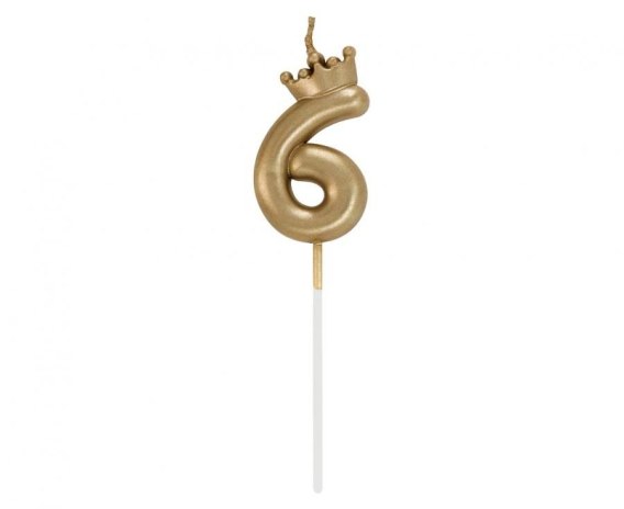 ŚWIECZKA CYFRA "6" Z KORONĄ, SZAMPAŃSKIE ZŁOTO