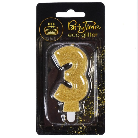 Świeczka urodzinowa eko brokat złota cyfra 3 Arpex (DS0918ZLO-3-0987)