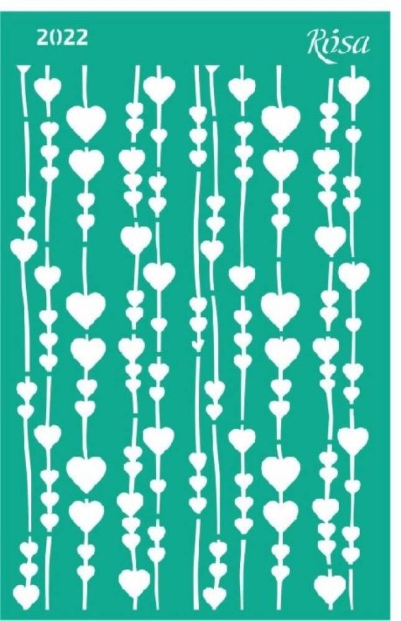 Szablon samoprzylepny do wielokrotnego użytku o wymiarach 13x20cm. Szablon po użyciu można wyczyścić szmatką i nałożyć ponownie na folię zabezpieczającą. Jest użyteczny do momentu, gdy strony klejące będą trzymać się podłoża. Szablon można użyć do dekorowania przedmiotów metodą decoupage. Bardzo dobrze przylega do dekorowanej powierzchni, dzięki czemu wypełnienie wszystkich zakamarków wzoru farbą lub pastą strukturalną jest proste.
