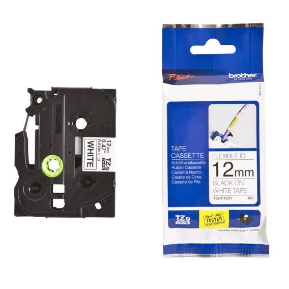 Oryginalne etykiety Brother TZEFX231 do drukarek z serii P-Touch . Drukarki etykiet służą do drukowania kodów kreskowych, adresowania korespondencji czy też oznaczania żywności lub skrzynek rozdzielczych.